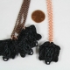 Handmade with loving care in memory of Walter Brogan, these necklaces were created using paper quilling strips. Each pendant was modeled after Walter and includes his notable white patch of fur under his chin. They are coated in a sealant which makes them water and UV resistant, also giving them a semi-glossy sheen to add character. One of the necklaces hangs from a 30 inch rose gold plated rolo chain. The other three pendants hang from 28 inch copper plated skinny chains which were chosen due to the current popularity of copper. It also compliments the black of the pendant nicely.