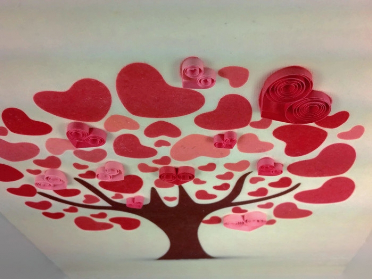 This unique love tree print is the perfect romantic anniversary gift for him or her. The wall art piece features an image of a tree with hearts as different sized leaves in shades of pink and red. A selection of the hearts have been carefully embellished with paper quilling, imparting eccentric elegance throughout. It would be ideal as a Valentine's Day gift or an anniversary gift, particularly first year paper anniversary (heart embellishments are made with paper) and second year cotton anniversary (the piece is on cotton canvas)! It is a truly romantic yet whimsical piece that is sure to make your space more meaningful. This piece measures 8X10 inches on a canvas panel. The image is created using gel medium transfer of ink from paper to canvas. Due to the unpredictability of gel transfers, the image has some imperfections and a slight overall distressed look, adding character to the piece. It was made with care and will add a bit of wow to your wall. This piece is unframed.